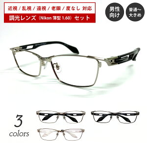 度付き 度なし 調光メガネ 非球面レンズメンズ 男性向けモデルシンプル、ベーシックで、普段使いしやすいデザイン!おしゃれな スクエア メタルフレームタイプのメガネです近眼 度数は-6.00まで対応。乱視にも対応しています...