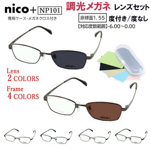 ニコプラス 調光レンズ 薄型 非球面レンズ セットメンズ 男性 モデル。シンプル、ベーシックな スクエア メタルフレームタイプ。近眼 度数は-6.00まで対応。乱視にも対応しています。度なし の調光レンズ0.00にも対応しています...