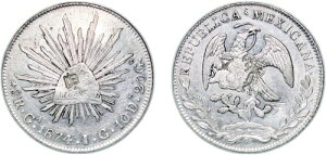 Reales Silver 903 AU商品について販売者メモ「AU」KM番号 KM 377製造国/地域:メキシコ流通/非流通:流通認証:未認証組成:銀 (.903)額面:8レアル発行年:1874 Ga IC造...