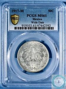 1917-M (Mexico) Silver 50 Centavos PCGS MS61 Wide Date - Lustrous and Original商品について販売者コメント「PCGSによる鑑定済みの、光沢があり美しいミントス...