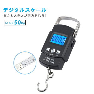 ■便利なコンパクトサイズ■最大測定重量50kgまで■1mメジャー内蔵、重さと大きさが両方測れる■バックライト付き、暗い場所でも計測可能■TAREボタンで袋を差し引いての測定も可能■便利な金属ハンドストラップ付き...