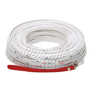 素材:グラスファイバー(PVCコーティング) サイズ:幅6.2mm×厚さ2mm×長さ100m 重量:1.6kg 1cm間隔幅目盛 JIS1級 水洗い可
