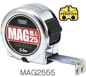 【商品説明】【用途】長さの測定。【機能・特徴】落下防止GOMカバー付きです。小指を引っ掛けたり、安全コードを取り付けることで落下防止を狙います。【仕様】●JIS1級両面印刷。●テープ巾:25mm。●テープ長:5.5m。●マグネットフック