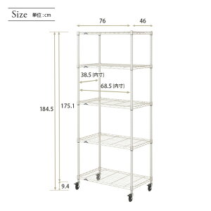 本体重量(約):22.4kg 材質:スチールシェルフ(棚板)・ポール:スチール(クロームメッキ) ナイロンキャスター:ナイロン樹脂 スリーブ:ABS樹脂 セット内容:スチールシェルフ(棚板)×5枚 スリーブ(棚板取付用部品)×22組 ...