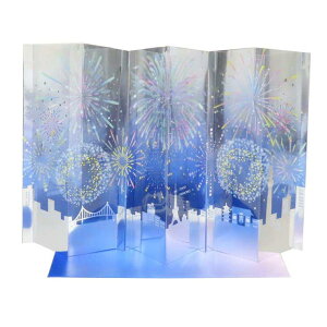 東京の夜空を彩る花火をイメージした華やかなカードお友達/贈り物/立体カード/家族/親戚贈ってももらっても楽しいおしゃれなグリーティングカードこちらは東京の夜空を彩る花火をイメージした華やかなポップアップカード立てて飾れるか