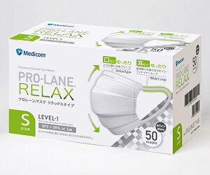 プロレーンマスク リラックス (50枚入り)Sサイズ 5箱セット。耳元ゆったり。長時間でも痛くなりにくいワイドイヤーループ。口元ゆったり。上下に開く立体プリーツ。ノーズピースはアルミニウム板でしっかりフィット...