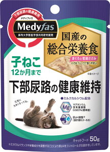 【商品説明】下部尿路の健康維持。成長段階に合わせて使える国産の総合栄養食。 おいしい上質な素材を選びました。【原材料】まぐろ、ささみ、大豆油、油脂加工品、コーンスターチ、フィッシュエキス、魚油、乳分解物...