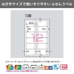 【商品説明】●ふせんのように使えるOAラベルです。糊が無い部分があるので、つかんではがしたり、インデックスのように飛び出して貼る事ができます。●紙を傷めにくい弱粘着です。●レーザープリンタ・インクジェットプリンタ・コピ