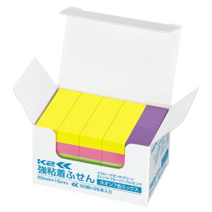 ●強粘着ふせん/ネオンカラー/7色ミックス●50mm * 15mm●枚数/90枚×25本入り●イエロー、マゼンタ、グリーン、オレンジ、ブルー、パープル、ピンク