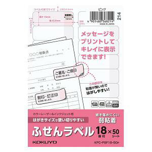 ■商品説明■●ふせんのように使えるOAラベルです。糊が無い部分があるので、つかんではがしたり、インデックスのように飛び出して貼る事ができます。●紙を傷めにくい弱粘着です。●レーザープリンタ・インクジェットプリンタ・コピ