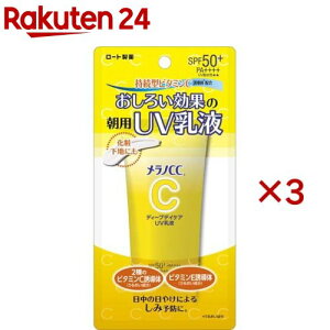 日焼け止め>日焼け止め>日焼け止めミルク>メラノCC ディープデイケア UV乳液 (50g×3セット)商品区分:化粧品【メラノCC ディープデイケア UV乳液の商品詳細】●2種のビタミンC誘導体※1(うるおい成分)配合...