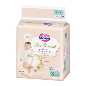 メーカー花王 ブランドメリーズ 本体サイズ(cm)18.5×12×19 特徴●繊細な肌に5ッ星のやさしさを。●おむつ内環境を清潔に保ち、健やかな肌へ。●肌研究生まれ●テープタイプ・S 19枚 4~8kg●天然植物成分アルガンオイル配合...