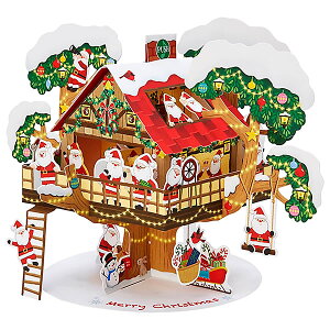 商品の特徴 バルコニー付きのツリーハウスがワンタッチで立体になります。 4面すべてにデザインが入っていて、乾杯するサンタや楽器を演奏するサンタ、プレゼント交換するサンタなど360度どの角度からもお楽しみいただけます。 ボタンを