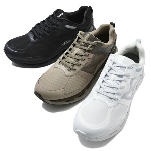すべてのアッパー材料に防水加工を施し、雨天での使用でも足元を快適に保つスニーカー。ボリューム感のあるミッドソールで、適度なロッカー構造により、歩行時に抜群のクッション性を発揮。