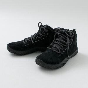 ■素足感覚を楽しむハイキングシューズ メレルの人気ベアフットシューズシリーズに、ミッドカットのハイキングモデルが新登場。 アッパーには柔らかく上質なピッグスキンレザーと、独自の透湿防水メンブレンを採用し、足元の快適さをキープ。アウトソ