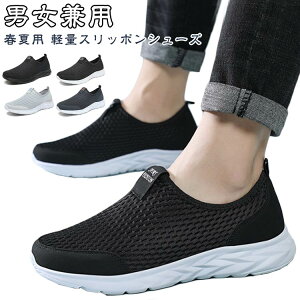 男女兼用 スリッポン スポーツシューズ 軽量 通気性 メッシュ ス