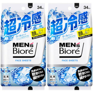 花王 メンズビオレ フェイスシート クールタイプ 34枚入 ボディシート 皮脂・ベタつき・毛穴汚れもスッキリ 丸まりにくい・乾きにくい・破れにくいフェイスシート 1枚で上半身までふける クールタイプ