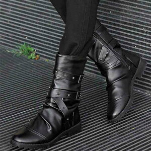 【商品名】バックル付きブーツ【カラー】ブラック ホワイト【サイズ】24 245 25 255 26 265 27【素材】PU【季節】春 夏 秋 冬【スタッフコメント】お洒落なバックルデザインがコーデのアクセントになるレザーブーツ。足に...