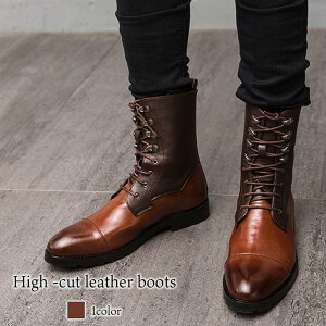 【商品名】ハイカットレザーブーツ【カラー】ブラウン【サイズ】24 245 25 255 26 265 27【素材】PU【季節】春 夏 秋 冬【スタッフコメント】存在感抜群の一足でスタイリングの主役に!洗練された雰囲気で、足元を上品に演...