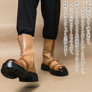 【商品名】レースアップレザーブーツ【カラー】ブラック ブラウン【サイズ】24 245 25 255 26 265 27【素材】PU【季節】春 夏 秋 冬【スタッフコメント】スタイリッシュなフォルムとレースアップデザインがポイントのブー...