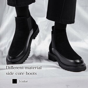 【商品名】異素材サイドコアブーツ【カラー】ブラック【サイズ】24 245 25 255 26 265 27【素材】PU【季節】春 夏 秋 冬【スタッフコメント】脚がきれいに見えるシルエットとシンプルなデザインでコーデを選ばない一足。軽...