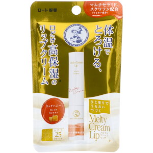 【商品解説】ひと塗りで、乾燥した唇にも潤いベールで密着。メルティクリームリップシリーズ内でワセリン(うるおい成分)の配合量が多い リッチワセリン処方 で、ラップのように密着し保湿を持続。唇や空気中の水分と反応して潤いを