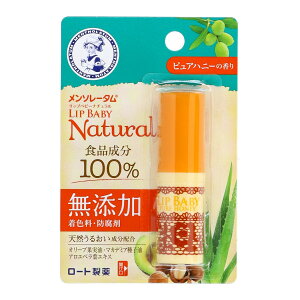 商品説明●「メンソレータム リップベビー ナチュラル」は、天然うるおい成分(オリーブ果実油、マカデミアナッツ油、アロエベラ葉エキス)配合の、食品成分100%にこだわったリップクリーム●唇の荒れ・乾燥を防ぎ...