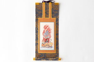 モダン仏壇にオススメの掛け軸 深み有る色合い上品でモダン仏壇に人気。 本紙絵像の細かな書き込みや裏地が金色で高級感があります。このサイズは主に上置き用サイズ [サイズ]縦210×軸先巾104ミリ(多少誤差があります)※通常の掛軸