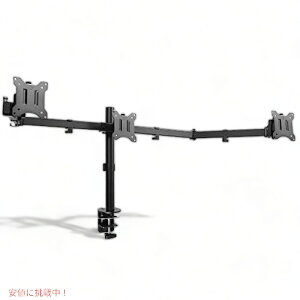 。同じ高さに調整でき、3画面を横並びにできるモニターアーム。クランプでしっかり固定。27インチまで対応。<特長>●3台のモニターを横並びに設置できるモニターアームです。●横並びで3