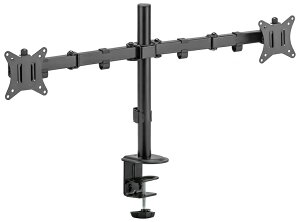 デスクのスペースを有効活用!13〜32インチサイズのモニターに対応するロングアームタイプのダブルモニターアーム。