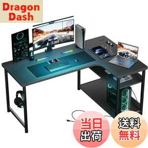 GTRACING ゲーミングデスク パソコンデスク L字 カーボン調 コンセント付き 引き出し付き ラック付き モニターアーム対応 棚高さ調節可能 ゲームデスク ワークデスク 小型モニター台 配線穴