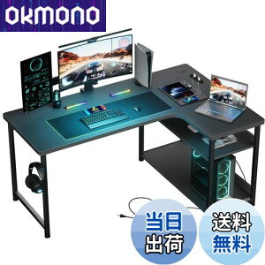 【ゲームと仕事両立】パソコンデスクとしてはもちろん、ゲーミングデスクとしても使用できるお洒落なL字デスク。お部屋のレイアウトに合わせてラックの位置を変更できます。モニター台を利用して目線をあげることで...