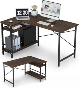 可動式棚】パソコンデスクの下の棚は3段階で調節可能で、高さに合わせて自分なりのDIYができます。PCケースやライトノベル、花瓶などを手軽に収納でき、非常に便利です。 【頑丈で安定感抜群のL字棚付きデスク】天板は最大80kgまで耐えます...