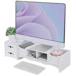 【収納プラス・デスク上をすっきり】モニター台2段式で上段は二つの引き出しが付いているので、ペン、スマホ、ノートなどの文具小物一気に収納できます。下段の空間を活用して、キーボード、マウスなどの周辺機器を整理し...