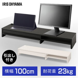 引出し付きモニター台で快適な作業環境に!◆引出し&棚板付きで収納力をUP!作業スペースをより広く電卓やハンコなどの小物収納にぴったりな引出しに、さらに棚がついて収納力アップ。モニターをゆったり置ける幅100cm...