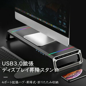 商品名モニター台 USB2.0/3.0データ転送付き モニター台 引き出し 折りたたみ可能 USB/TYPE-C充電付き タブレットと携帯電話ホルダー付き耐荷重30kg カラフルなライト オフィス用品...