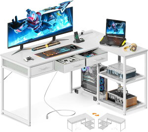 【左右組み替え可能&L字型】 左右のサイドデスクを組み替え可能なデザインを採用しており、部屋のレイアウトや使用スタイルに合わせて自由に配置できます。L字型のデザインは、見た目が洗練されているだけでなく、広い作業スペースを提供し、作業効...