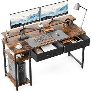 【送料無料】ゲーミングデスク ラック&引き出し2杯付き 幅120cm パソコンデスク 机 pcデスク モニター台付き ワークデスク オフィスデスク おしゃれ 省スペース 一人暮らし 在宅勤務 左右入れ替え対応...