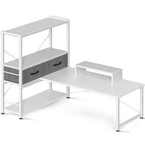 幅108奥行80高さ85-108.5cm テレワーク L型デスク・左右組み換え自由 モニタ台の高さ調節可能 引き出しとコンセント付き 収納たっぷり ゲーミングデスク オフィスデ【安全構造】日本JIS基準デザインに基づいた頑丈な構...