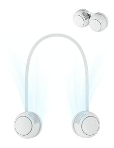 【折り畳み首掛け扇風機】ネックバンドファンはくるっと巻いてコンパクトに収納可能です。羽根なしタイプで、髪や手を巻き込む心配がありません、安全安心に使用できます。荷物が多い時や雨の日など、両手を解放が自由に使えます。シ
