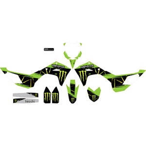 モンスターエナジーグラフィックキット16年-18年 カワサキ KXF 450カラー:緑/黒/白・ラジエーターシュラウド、タンク、ナンバープレート、エアボックス、ロアフォークガード、フロントフェンダー、リアフェンダー...