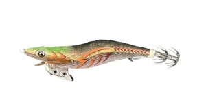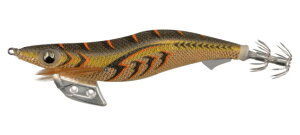001 金アジ アオリイカの大好物であるアジをリアルに再現したカラー。 アジ柄と金テープの組み合わせで状況を選ばず使えるオール マイティーカラー。 変わり続けるフィールドに対応するために生まれた、低活性の イカ