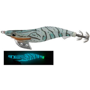 シルエットが際立つ紫ボディは、深場や闇夜など最も暗い状況下 で効果を発揮。 蛍光柄のアクセントで、ナーバスな大型イカも魅了する。