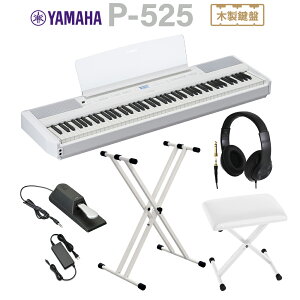 YAMAHA「P-525WH(本体)」とヘッドホン・Xスタンド・Xイスのセットです【特徴】P-525は、自然な弾き心地と美しいサウンド、充実した鍵盤楽器の音色を搭載したPシリーズのフラッグシップモデルです...