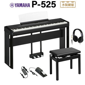 YAMAHA「P-525B(本体)」と専用スタンド・高低自在椅子・固定3本ペダル・ヘッドホンのセットです【特徴】P-525は、自然な弾き心地と美しいサウンド、充実した鍵盤楽器の音色を搭載したPシリーズのフラッグシップモデルです...