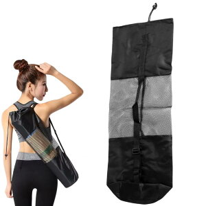 商品名:ヨガマットケース ヨガマットバッグ 黒 メッシュバッグ 簡易収納 ショルダー ヨガマット ケース バッグ 携帯 持ち運び 蒸れない メッシュ 軽量 コンパクト 6mm 8mm シンプル ヨガマットケース...