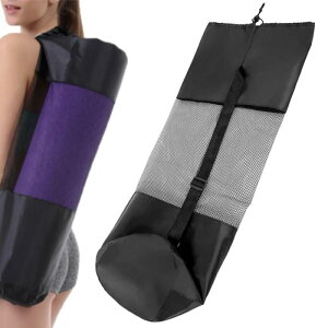 ヨガマットケース ヨガマットバッグ マット収納バッグ 用品 30×90cm 黒 メッシュ 簡易収納 多機能ストレージポケット 肩掛けヒモ 持ち運び便利 収納 学校 フィットネスほとんどのヨガマットにフィットのヨガトートは...