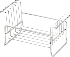 【商品説明】 お皿を綺麗に立てられる水切りカゴ。サイズは中皿用(直径目安18〜23cm) お皿が乾いたらそのまま収納場所へ移動できるよう手をかける部分もつけました。 食器棚の収納にもお使い頂けます。 ステンレス製で丈夫で耐久性に優れ