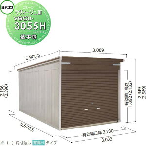 商 品 詳 細商品名ヨドガレージ ラヴィージュ3 標準高タイプ 豪雪型 基本棟 VGC-3055サイズ(mm)幅3003高さ2349奥行き5570.5 有効開口寸法:幅2730高さ1892 建築面積:...