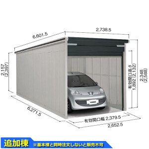 オープンスペースの連結と側面シャッターで使い方広がります。シャッターにはディンプル錠を採用=安心の仕様。当店では「ガレージ商品」の施工組立工事は行っておりません、商品の販売のみとなりますのでご注意下さい。大型商品の為、...